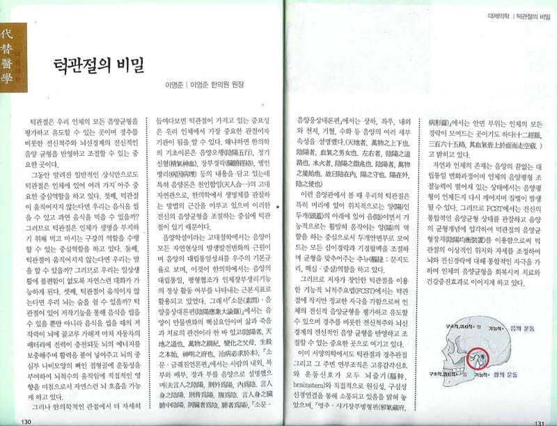 턱관절은 우리 인체의 모든 음양균형을 평가하고 유도할 수 있는 곳이며 경추를 비롯한 전신척주와 뇌신경계의 전신적인 음양 균형을 반영하고 조절할 수 있는 중요한 곳이다.